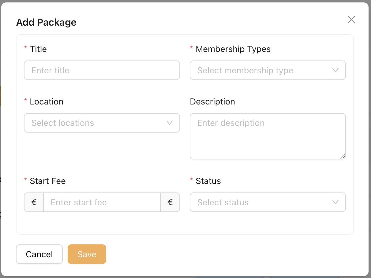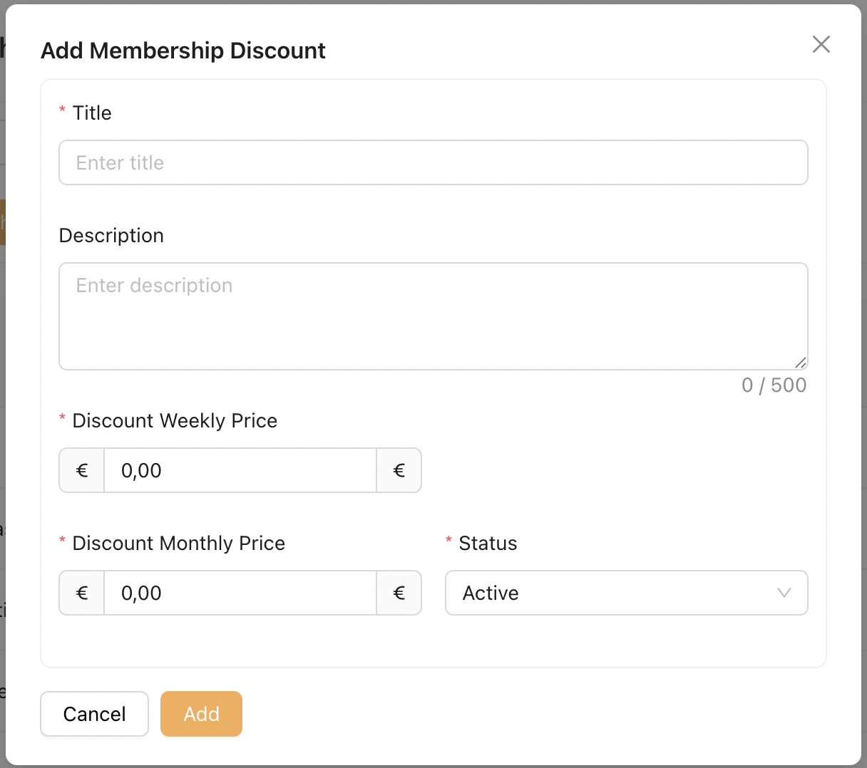 - Cancel Period : Defines how many weeks or months in advance a member must give notice to cancel the membership.